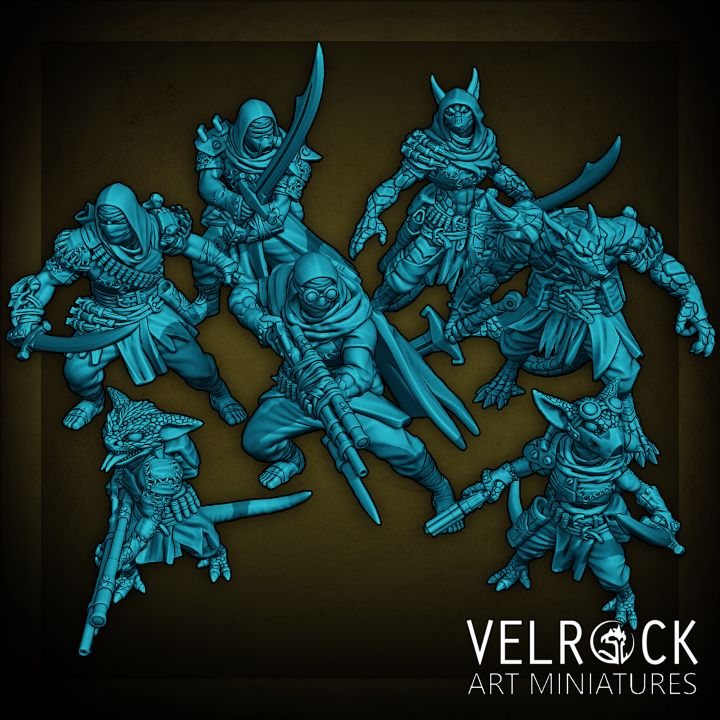 The set includes 6 dune raider miniatures. all set at 32mm scale to fit on a 25mm base.