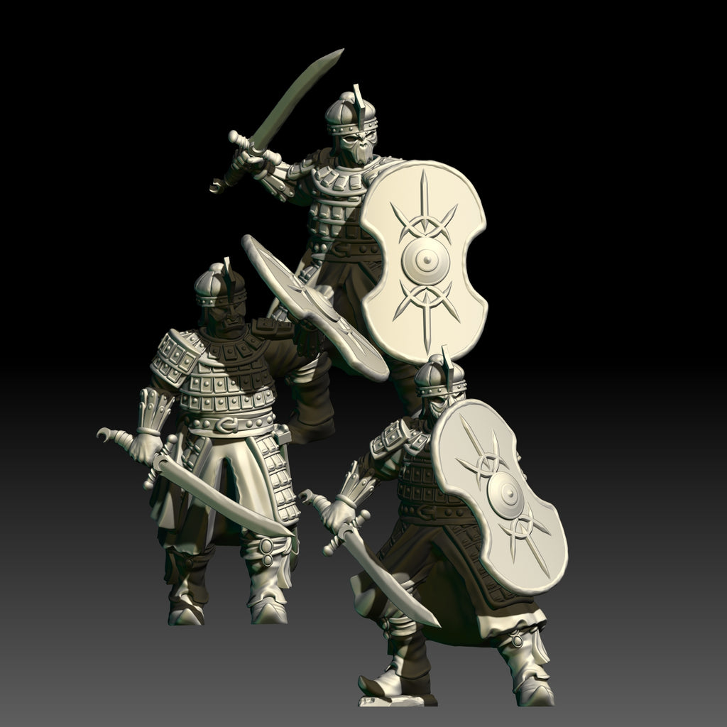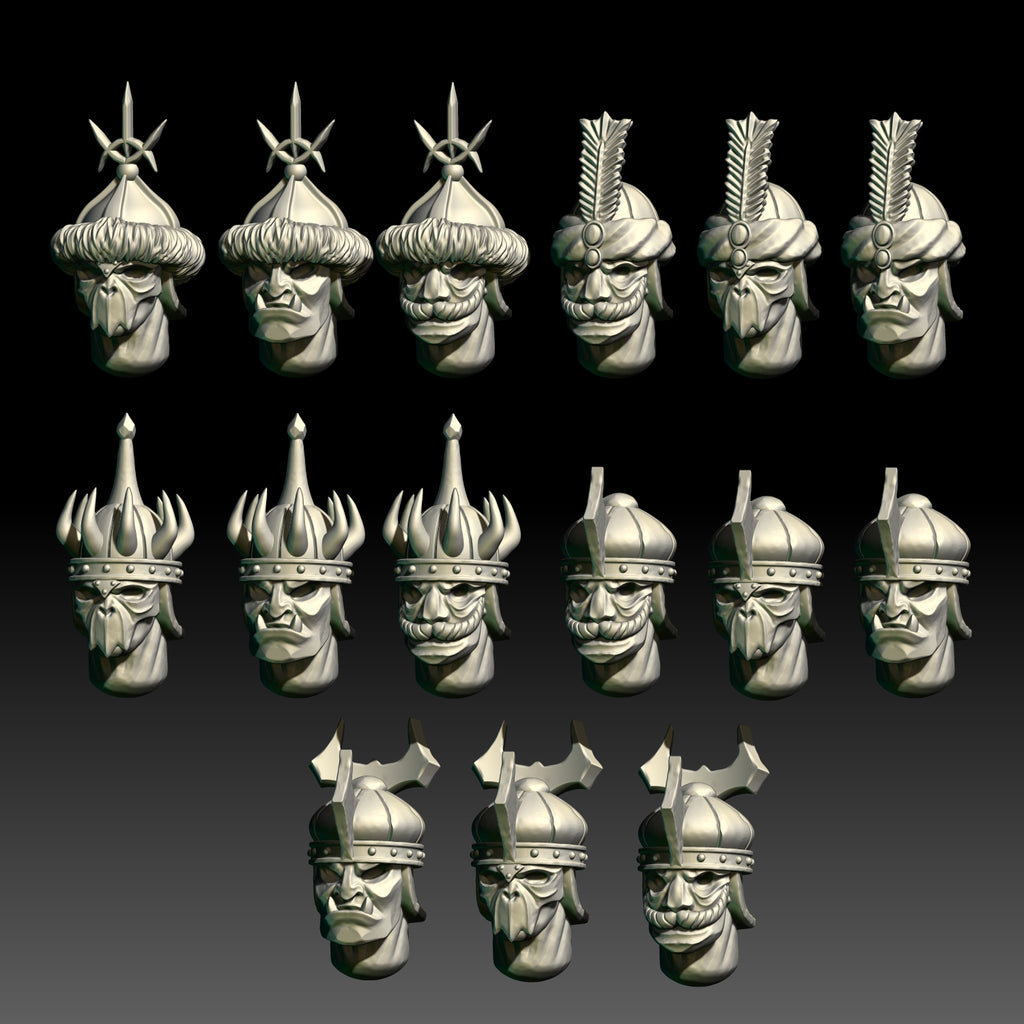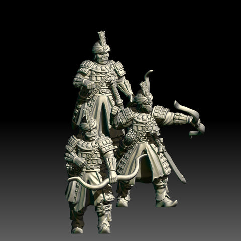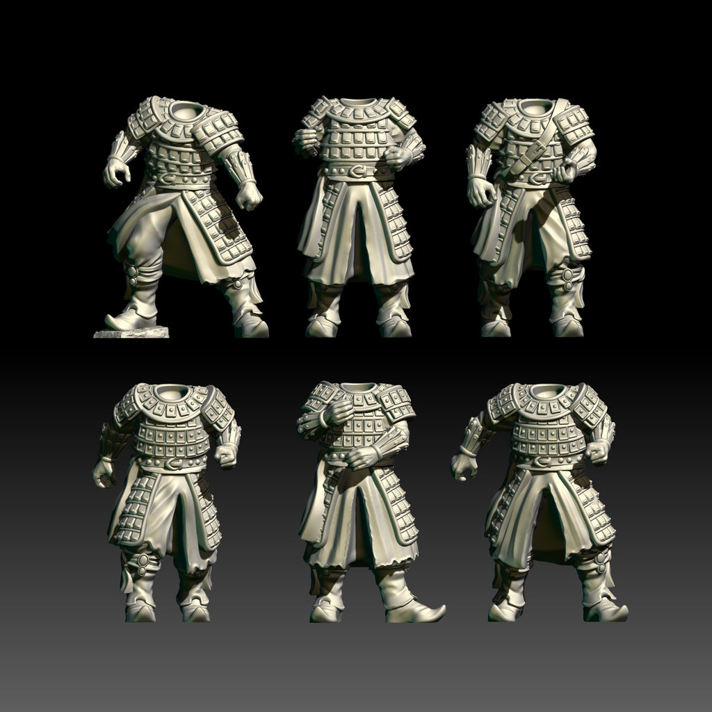Set contains 12 Warrior Bodies (6 spears, 3 swords, 3 archers), 15 modular heads and one of the Warriors of the East Weapons set incuded. Bases are not included. For more weapon modularity, please see the separate weapons set.